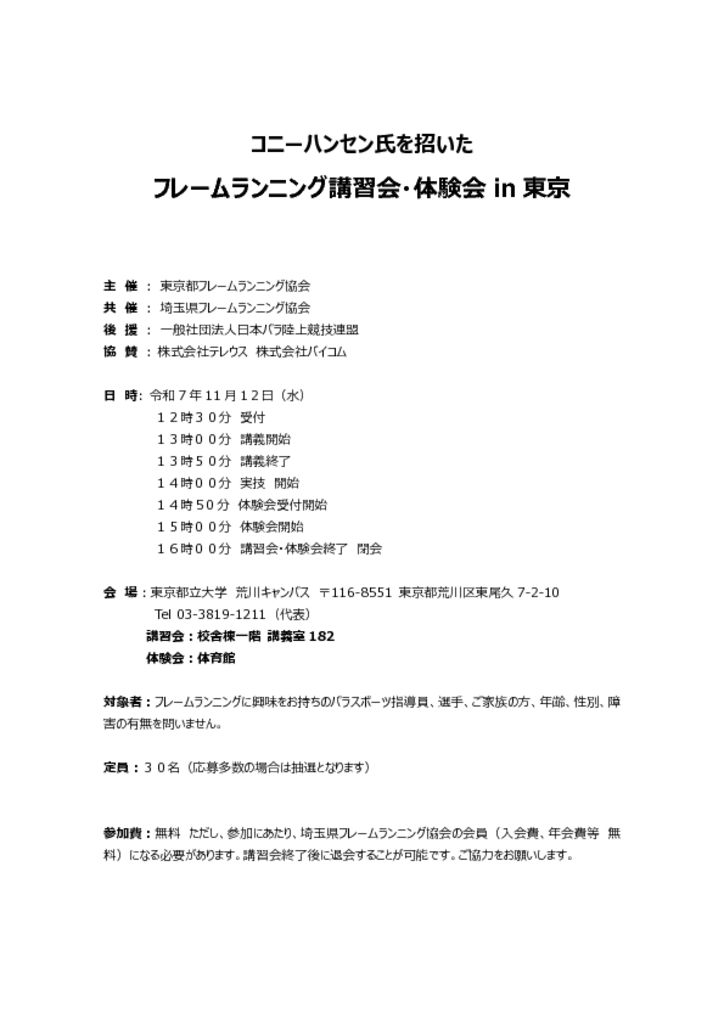 - 2025.10.17お知らせフレームランニングの講習会・体験会のお知らせ